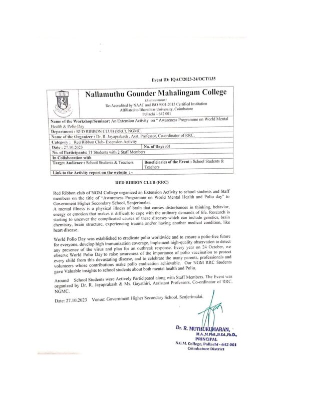 RED RIBBON CLUB – (RRC)- World Mental Health & Polio Day