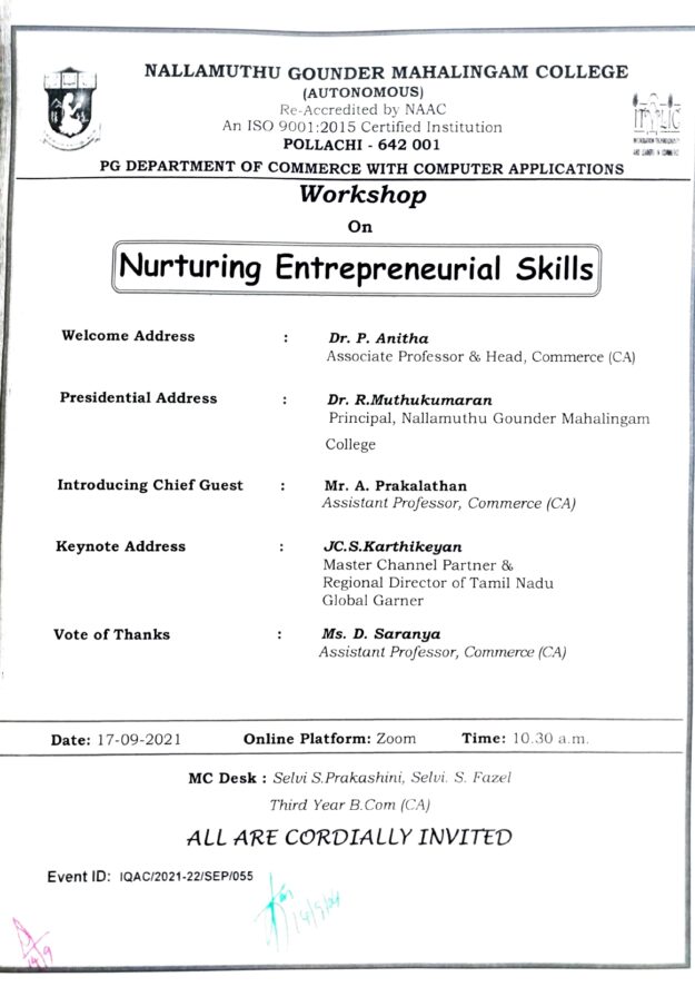 Date: 04.08.2023 Time:10.00Am Venue: Vivekanandar Arangam Participants: Students, Research Scholars, Academicians, Delegates from Industries.