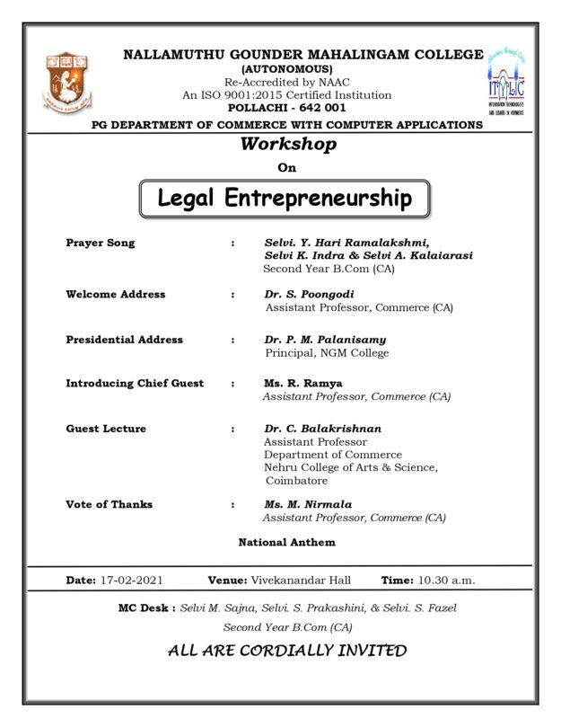 Quiz Competition Activity for Intra-Computer Cluster Departments of NGM College Quiz Competition May 2022 This is a Quiz Competition organized for Intra Computer Cluster Departments of NGM College on 16.05.2022. Quiz Competition May 2022 aims to tab the limitless potential that lies within the student community by felicitating them with a platform to showcase their…