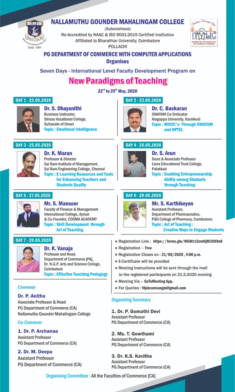 Seven Days International Faculty Development Program on New Paradigms of Teaching