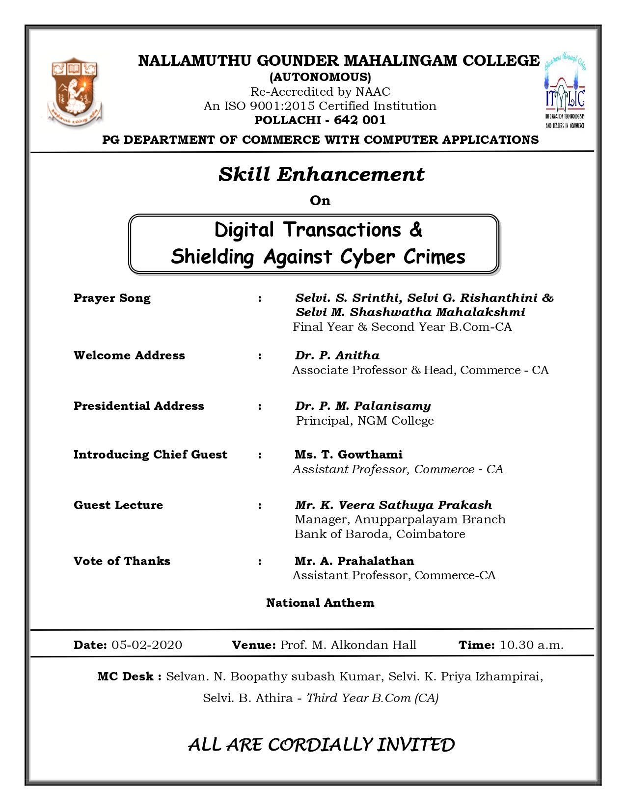 Skill Enhancement on Digital Transactions & Shielding Against Cyber Crimes 2020