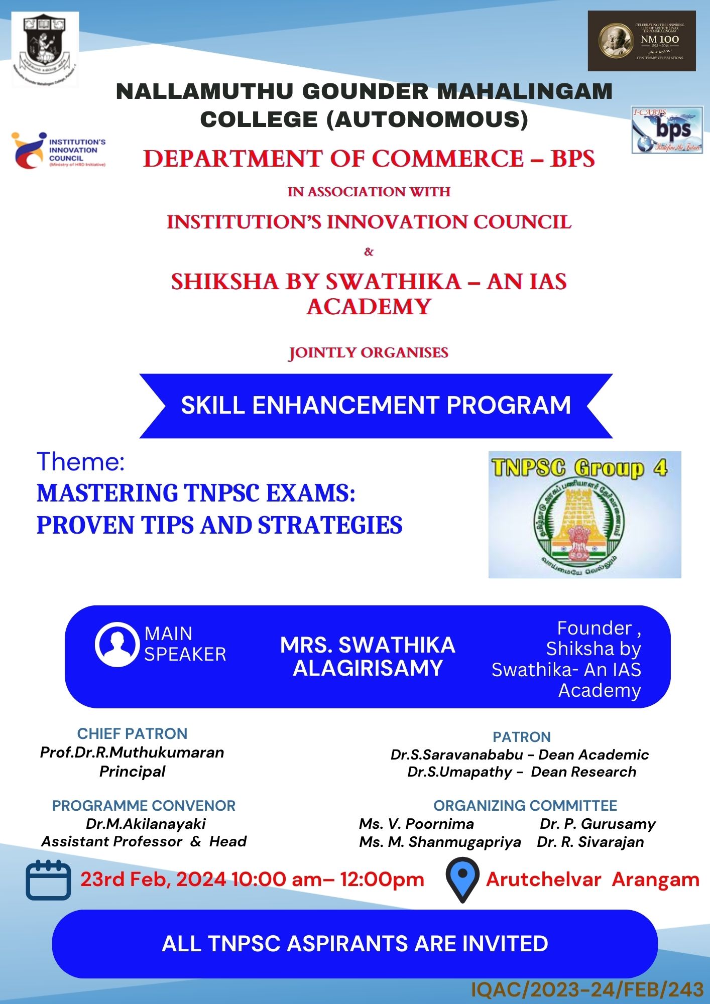 Skill Enhancement Program on “Mastering TNPSC Exams: Proven Tips and Strategies”