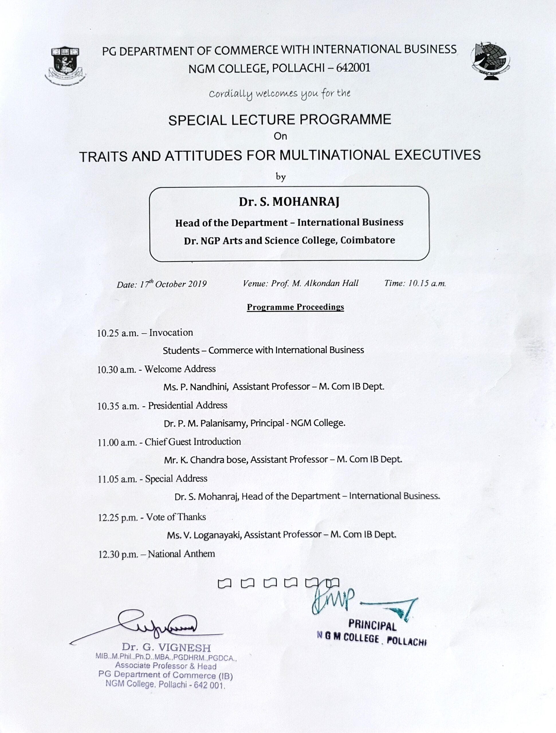 Special Lecture Programme