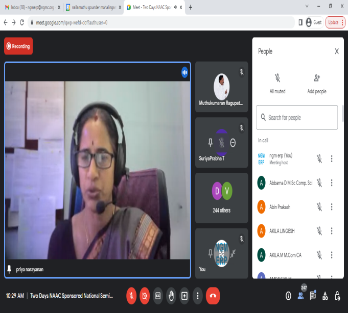 - Dr. Nirrmala Sathish, Assistant Professor, Department of Economics