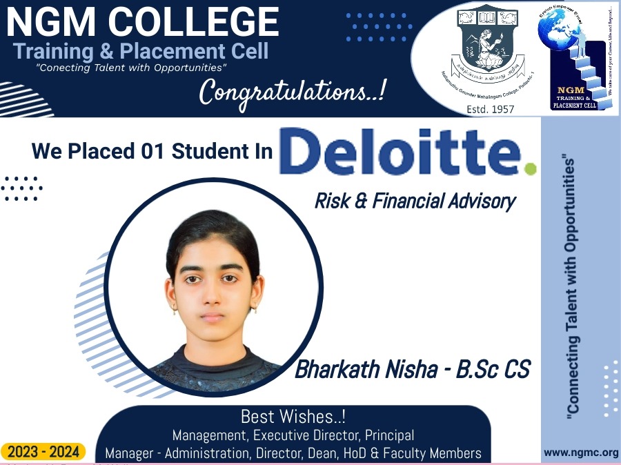 With Support of all Department Staff Members, We have Placed 01 Student in Deloitte (Phase 2). A Total of 04 Students Placed in Deloitte, so far.